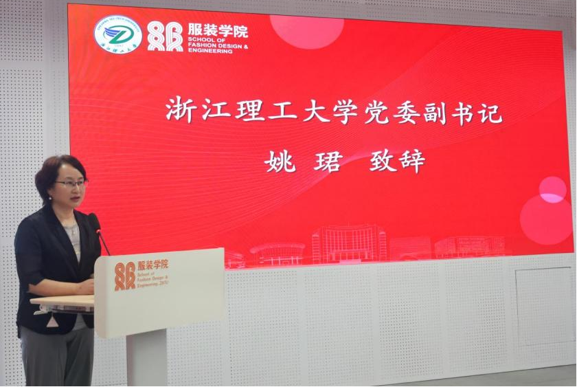 姚珺致欢迎词。她代表学校向“爱唯教育基金”的设立表达衷心的感谢和热烈的祝贺。她简要介绍了学校和服装学院的办学特色等情况。她表示,杭州爱唯服饰有限公司作为服装企业的杰出代表,是一家有实力、有责任感和有远见卓识的优秀企业。早在2016年,企业就向我校捐赠150万元,设立“致知教育基金”,支持我校教育事业的发展。此次再次慷慨捐赠,充分体现了企业对高校教育事业持续而深厚的关怀。她强调,“爱唯教育基金”及“时尚产业研发中心”的设立,不仅为学校科研创新和人才培养注入了新的动力,也为校企协同育人奠定了坚实基础。期待校企双方进一步推动产学研深度合作,实现“一流高校”与“一流企业”的强强联合,共同为服务时尚产业与地方发展贡献力量。