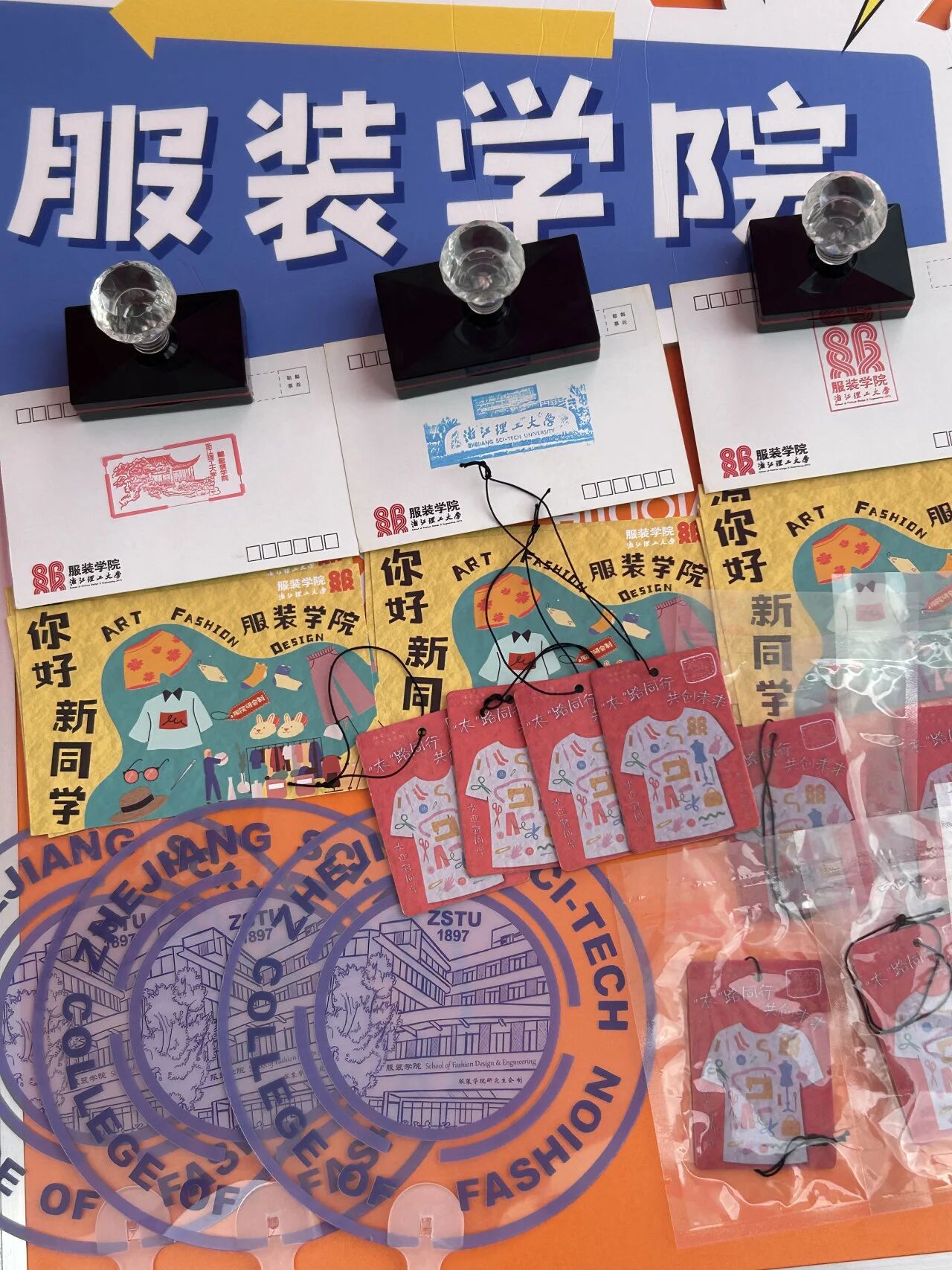 服装学院研究生会以“衣路同行,共创未来”为主题,将服装元素、服装学院七号楼等融入设计,打造出系列迎新文创好礼。其中包括定制服装香薰片、以七号楼为原型的小圆扇、“你好新同学”主题明信片。愿这份满载心意的礼物,陪伴你在“浙理”开启新征程,“裁”出属于你的精彩人生!