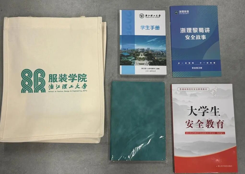 服装学院为新生提供了实用而富有纪念意义的入学礼包,包含森马服饰为我院赞助的2025级新生专属定制全新院服,实用且富有纪念意义的定制帆布袋与精美学业笔记本以及详实的学生手册,为新生提供生活指南、学业指导和安全锦囊。