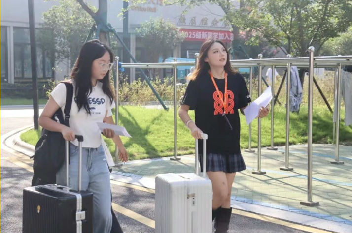 “服”务第一站、“装”满新期待——学生志愿者们以热情和专业构筑起一道亮丽的“迎新风景线”。从身份核验到物资发放,从路线指引到贴心提示,每一个环节都细致入微、有条不紊。他们不仅用双手分担了新生的行囊,更用真诚的笑容消解了初来乍到的不安。一声声“同学你好,我来帮你”、一句句“欢迎来到服装学院”,传递出浓厚的浙理情怀与学院温暖,也让2025级新生在入学的第一天,深切感受到“服装学院大家庭”的归属感与凝聚力。