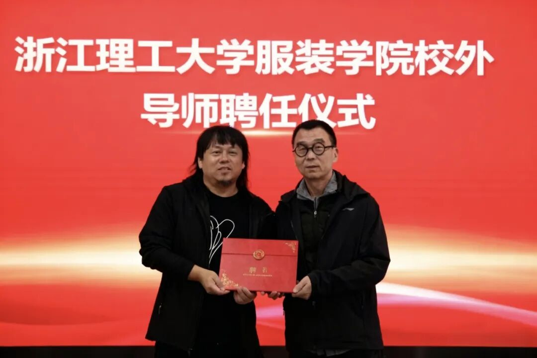 为深化产学研协同育人体系建设,服装学院院长崔荣荣为王路平颁发校外导师聘书。