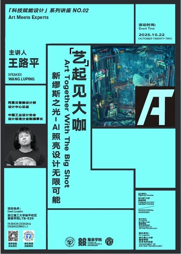 10月22日,服装学院“艺”起见大咖系列讲座特邀中国“计算设计”理念首倡者、阿里云设计中心总监王路平担任主讲嘉宾,以《新缪斯之光——AI照亮设计无限可能》为题,带来一场关于AI与设计思维的深度分享,讲座由艺术与科技系主任陈敬玉教授主持,艺术与科技专业及数智时尚设计微专业的师生参加此次讲座。