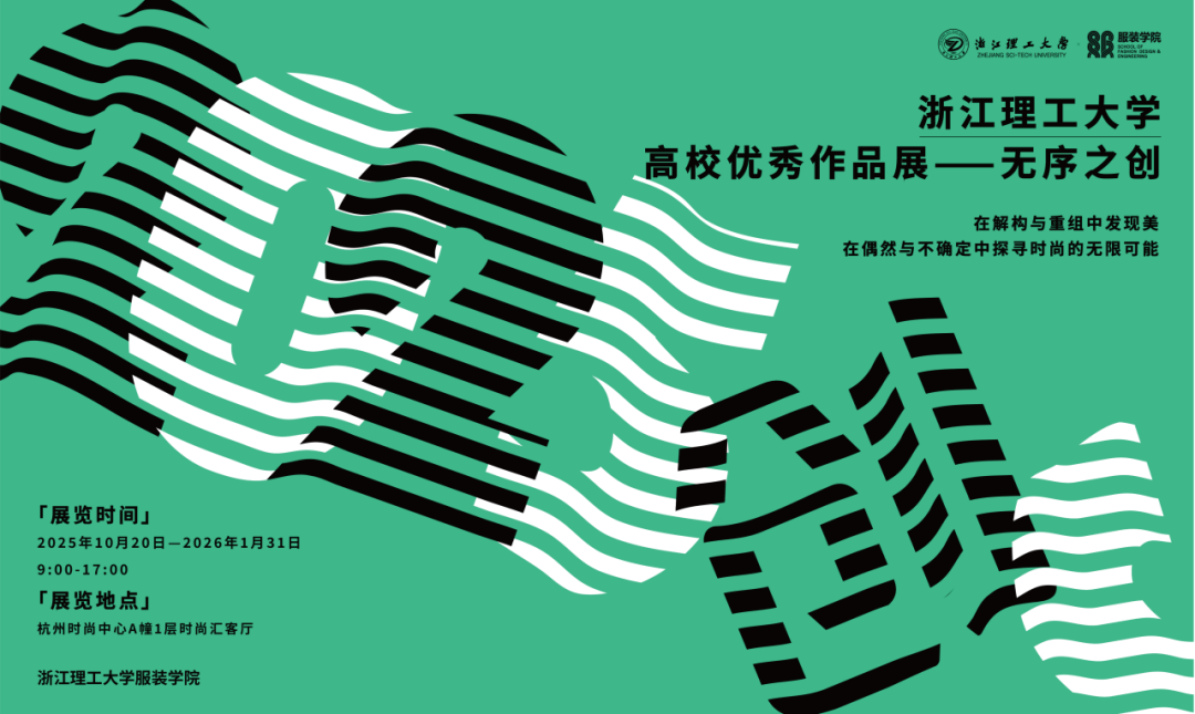“无序之创”浙江理工大学优秀作品展,由杭州时尚中心与浙江理工大学服装学院联合呈现。展览精选来自服装与服饰设计专业男装、女装、针织与工作坊四大模块的4组共11套优秀学生作品,集中呈现新生代设计师在品牌构建、色彩表达、面料创新与结构重塑等多个维度的前沿探索。