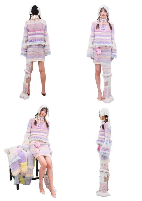 一种名为“梦境修补术”的疗法风靡全球,在遍布世界的睡眠诊所里,人们通过植入人造记忆以缓解焦虑,却导致海量情感数据溢出、流散。CHIMORI,正是这些废弃记忆的收容之地。品牌以针织为媒介,将混乱无序的梦境编译为触手可及的实物。每一件衣物,都承载着“人造少女”的记忆残片;它们如同被拆封的盲盒,静静等待与穿戴者之间,发生一场「错误的共鸣」。
