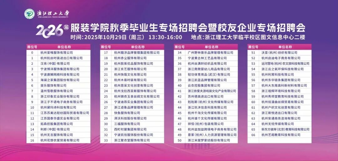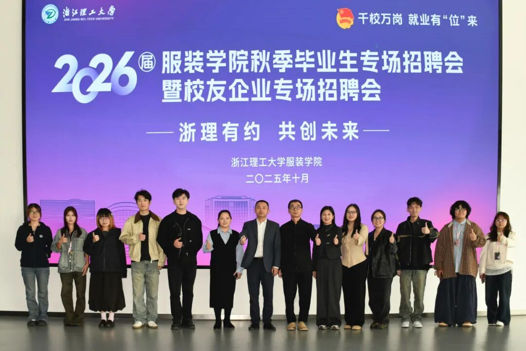 10月29日下午,浙江理工大学服装学院“浙理有约 共创未来”2026届毕业生秋季专场暨校友企业专场招聘会于临平校区图文信息中心二楼顺利举行。本次招聘会汇聚60余家纺织服装行业优质企业,为毕业生搭建精准的就业对接平台,提供丰富的岗位资源与贴心的指导服务,助力学子顺利开启职业生涯新篇章。