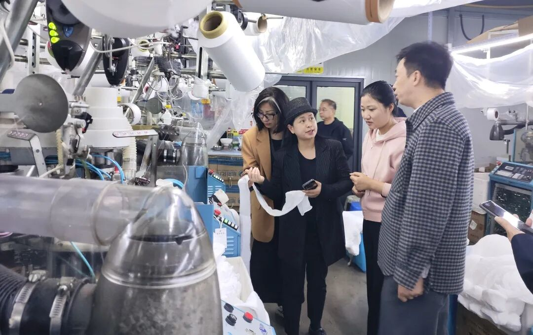 随后,我院一行来到白鹤国际丝袜城进行参观调研。在这里,专家们全面了解了白鹤丝袜产业的发展历程、规模现状、品牌建设及未来规划,对当地形成的集研发、设计、生产、销售于一体的完整产业链表示赞赏。