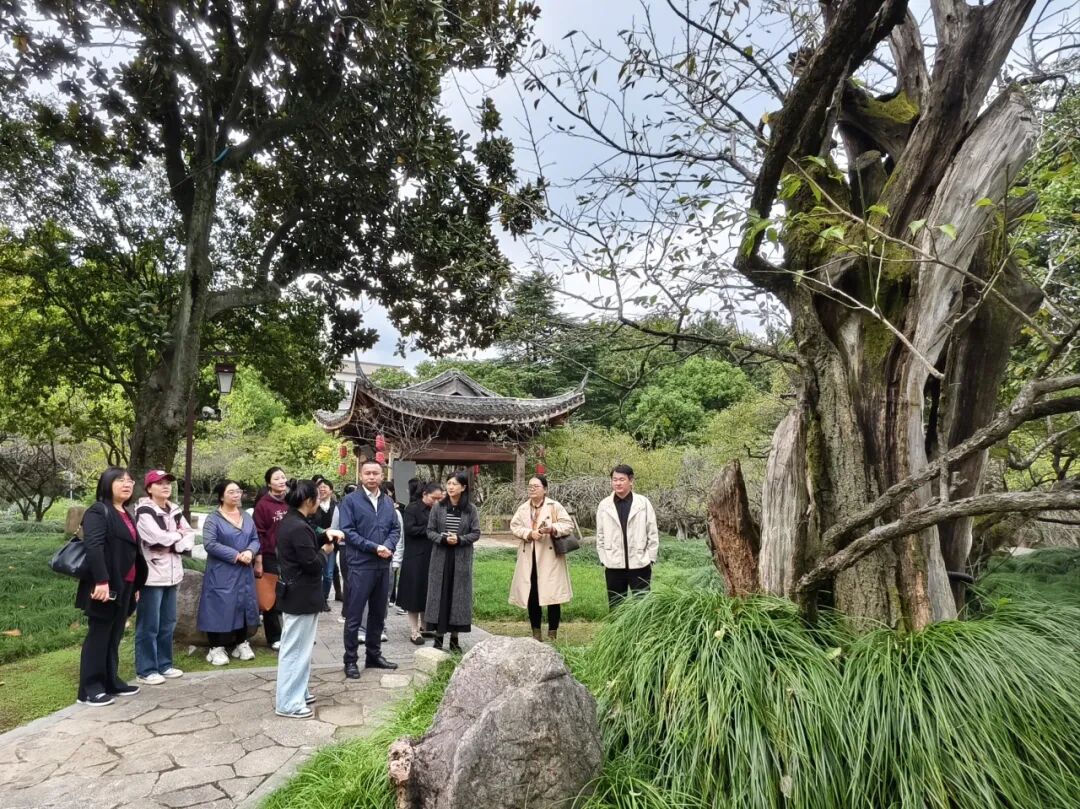 在大明堂,教职工们聆听了讲解员对历史渊源与文化内涵的深入介绍,沉浸于古梅幽香与园林雅韵之中,深切感受这片土地所承载的厚重文脉。