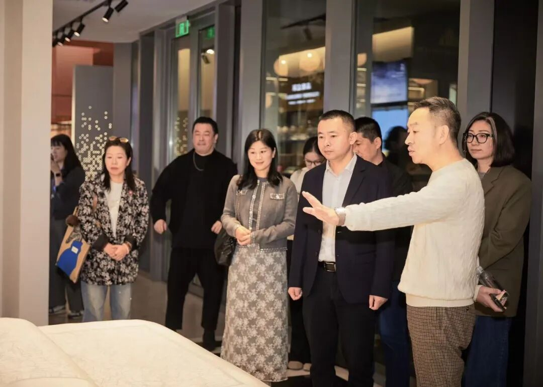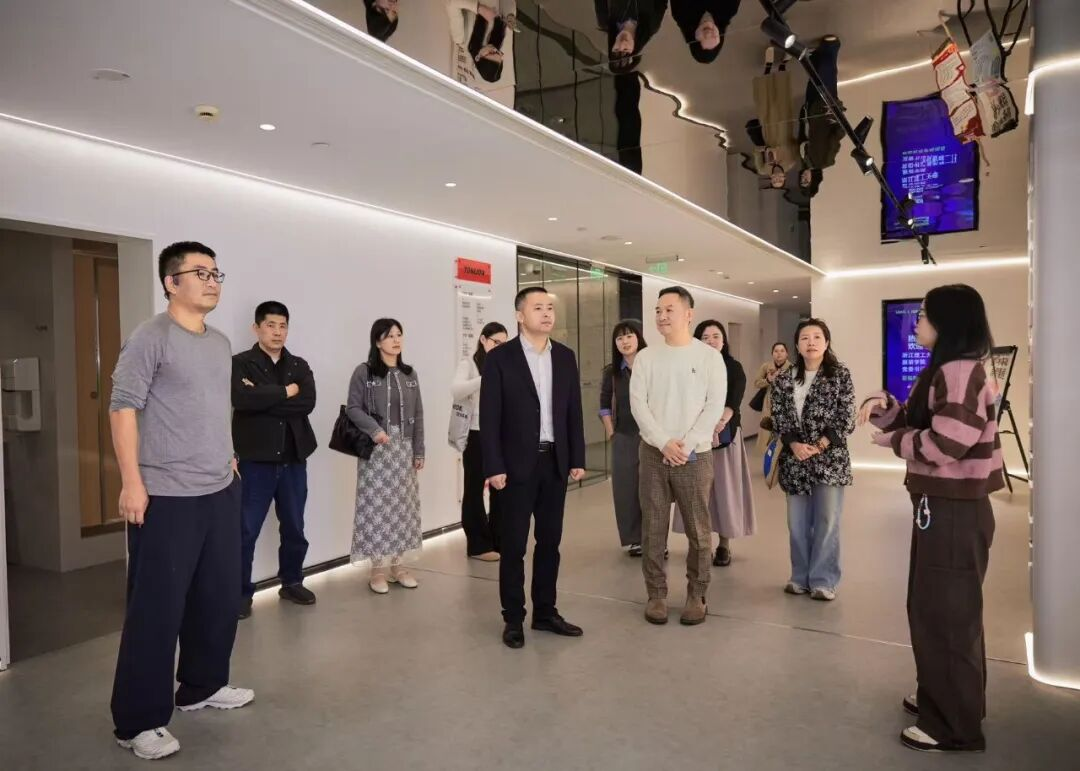 在宁波博洋控股集团有限公司,吴跃峰一行受到宁波博洋服饰集团副总裁、我校1994级服装艺术设计系校友、服装学院宁波校友会会长项江鹏,瑞品集团总经理、我校2001级服装设计与工程系校友张时通,宁波博洋职业装有限公司副总经理张忠岩等企业负责人及宁波校友的热情接待,先后参观了NFCC、博洋家纺、BEYOND SENSE艺术空间等品牌与创意平台,深入了解企业发展历程、品牌战略与设计理念。随后,双方举行座谈交流。