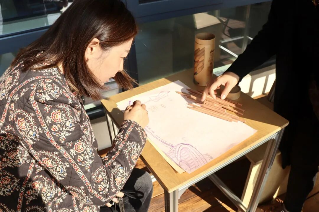 自由交流环节移至五楼露台。郑健、邹奉元、朱小行三位老教师分别回忆了与大家在一起的青春故事,学生代表向老师们献上鲜花。个人发展分享时,“90后”“00后”眼中“遥远”的行业故事,在校友们的讲述中鲜活起来:有人成为高定时装设计师,让中国风走上国际T台;有人深耕服装教育,把“工匠精神”种进学生心田;有人在互联网领域创业,用大数据重构服装供应链……不同的赛道,同样的执着,“把热爱过成一生事业”,是服设人不变的浪漫。随后,一个印有“89服设毕业32周年”字样的蛋糕被缓缓推上,大家共切主题蛋糕,许下“下次再聚”的美好心愿。