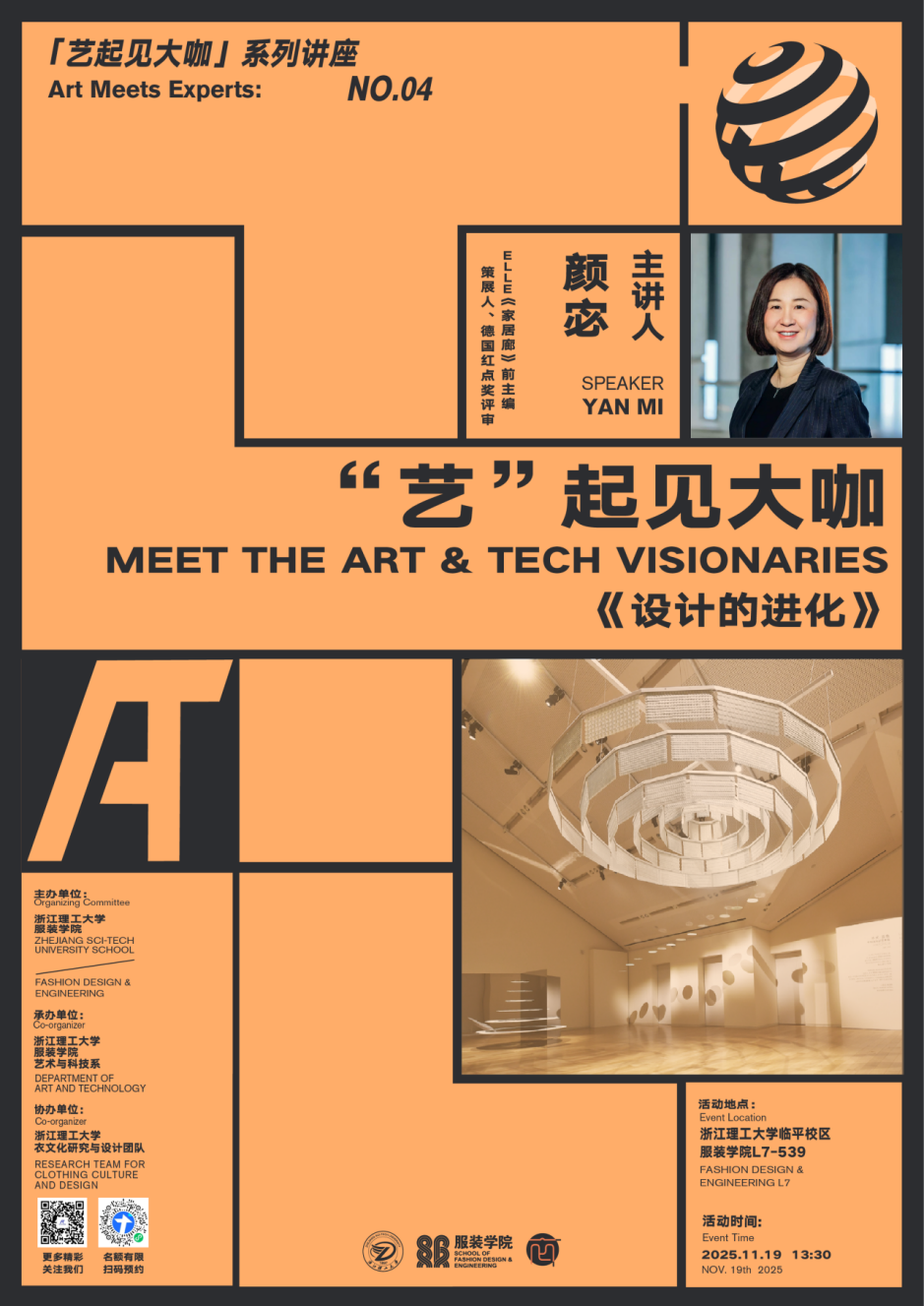 近日,服装学院艺术与科技系“艺”起见大咖讲座《设计的进化》在服装学院7号楼539教室举行。讲座特邀红点设计奖评委颜宓担任主讲嘉宾,系统分享当代设计的核心价值与实践路径。讲座由服装学院副院长顾冰菲主持,艺术与科技系主任陈敬玉、副主任胡扬,艺术与科技系、数智时尚设计微专业师生共同参与。