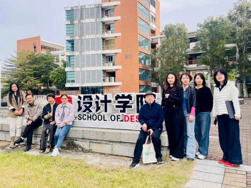 调研团队走访了广东工业大学艺术与设计学院。时尚设计与展演系主任卢新燕、党支部书记周璇璇、副系主任莫晓红及教师代表宋文芳、陈子豪等参加交流。广东工业大学艺术与设计学院作为Cumulus(世界艺术、设计与媒体院校联盟)成员,在设计实践与创意产业结合方面独树一帜。学院负责人介绍了其“集成新工科、实践新范式”的办学特色,特别是依托“产学研一体化”布局,在工业设计集成创新、数字创意等方向上的探索。时尚设计与展演系负责人分享了“智能可穿戴设计方向创新班”及“跨专业工作坊课程” 的建设经验。双方深入交流了在设计学科建设和课程设置创新发展的经验,并一同参观了广东国际先进设计中心与广东省工业设计展览馆。