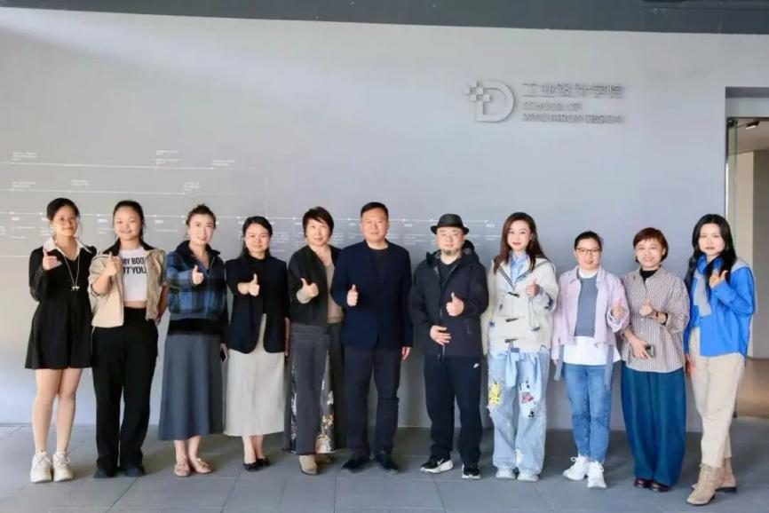 调研团队抵达华南理工大学设计学院。学院党委副书记黄广发、副院长高占盈、服装与服饰设计系主任黄琴霞、副主任秦臻及教师代表张金梅、刘光宇参与了交流。黄琴霞主任与秦臻副主任详细介绍了学院“时尚与创新、时尚与科技、时尚与商业”三位一体的特色路线。学院充分叠加华南理工大学理工科优势,通过“项目驱动—科学技术—人文艺术”协同教学模式,构建了多模块互动的课程群。双方交流探讨了如何服务国家需求与行业发展,以及国际化办学经验。华工设计学院通过高频次的国际工作坊与竞赛,为师生提供了广阔的国际视野,这一做法为调研团提供了宝贵借鉴。随后,团队参观了该院教学成果展,实地感受了其理性与感性交融的设计风格。