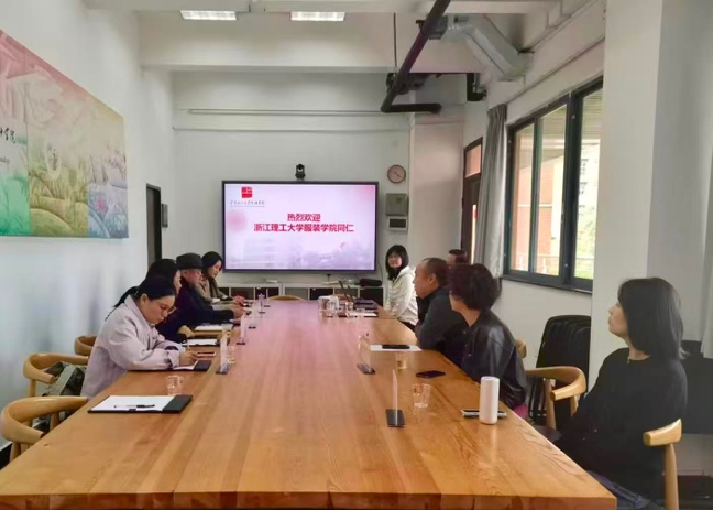 调研团队考察了广州美术学院工业设计学院,学院副院长裴悦舟、党总支副书记朱梦梅、服装与服饰设计系主任王文及教师代表王桦等热情接待了考察团队。座谈会上,双方围绕“十五五”规划及数智时代下的设计教育进行了深入探讨。裴悦舟副院长详细介绍了学院的发展历程与改革成果。主要介绍了学院依托“国家级特色专业”及省级协同育人平台,在产学研用方面积累的丰富经验。王文回顾了此前与浙理工服装学院在专业赛事及教研层面的良好互动,并期待未来深化合作,并重点介绍了服装与服饰设计系“专业+教研中心”的人才培养模式,该模式侧重设计思维、风格研究、材料研究与品牌策划,致力于培养面向时尚产业、具备跨行业能力的多元化人才。随后,团队参观了广州美术学院工业设计学院的教学成果展、专业实验室及校史馆。