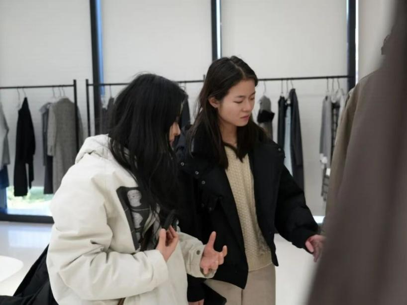 师生们参观了爱唯二十周年展,身处实景感受企业二十年来在服装设计领域的深耕细作。参观过程中,师生们亲眼见证了爱唯如何从“做好一件衣服”的初心出发,精心挑选面料与辅料,精进工艺,创造出符合亚洲女性身型的高品质服装。同学们结合现场展品与讲解,积极记录、交流,在实践中深化了对服装设计与品牌理念的认知。