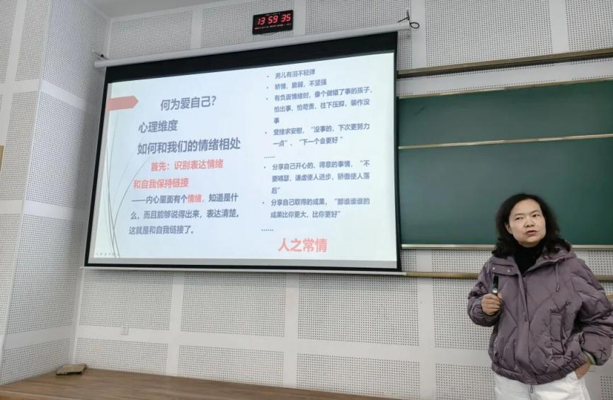 张新波教授指出,识别与表达情绪是理解自我的基础,强调“情绪背后,藏着未被看见的需求”。她建议学生通过建立“情绪词汇库”增强对自身情绪的觉察能力,并联系“我感到……,我需要……”的表达句式,引导学生清晰地传递感受,并明确需求。