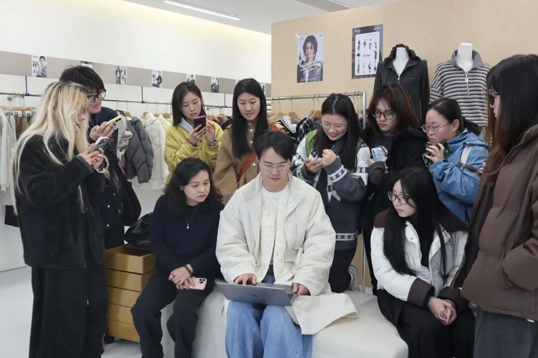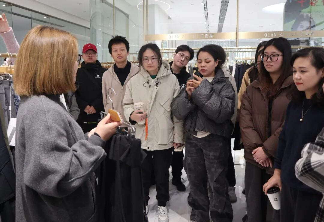 12月9日,同学们跟随校内老师走出校园,前往杭州繁星璀璨有限公司和KA品牌女裤公司进行实地参访。企业导师带领同学们参观了他们的企业展厅,告诉同学们商品企划始于清晰的主题定位,贯穿于色彩、廓形、面料、风格与目标人群的系统性分析之中。企业导师周夏舞还以羽绒服为例,完整展示了从色彩趋势分析、廓形选择、面料比对,到最终系列风格定位的全过程。他特别指出,企划不是数据的罗列,而是分析之后的总结与提炼,要精准把握人群与色系的对应关系,才能真正打动市场。