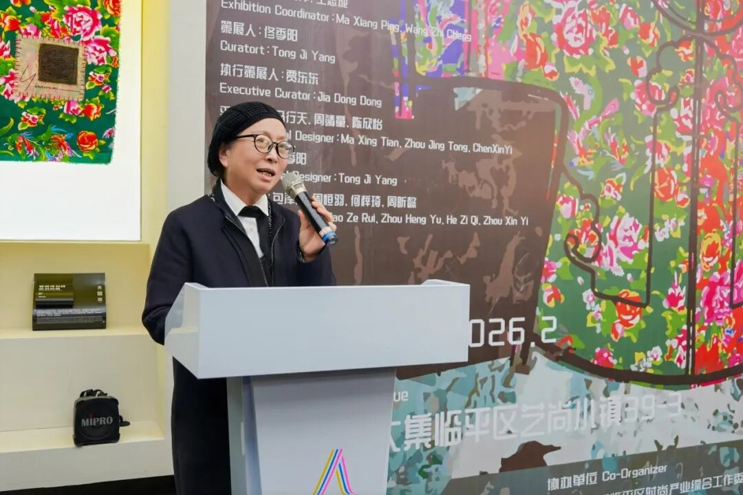 吴跃峰在致辞中重点阐释了本次展览的时代价值。他指出,袁仄教授以“衣非衣 非常艺”为主题的创作,实现了传统服饰文化基因与当代艺术张力的有机融合,生动彰显了中华优秀传统文化的生命力。吴跃峰强调,本次展览的成功举办得益于临平区、临平新城管委会及艺尚小镇的大力支持。中国艺尚大集作为产教融合新标杆,为时尚产业、文化艺术与教育科研的融合发展搭建了优质平台。后续,学院将依托数智风格与创意设计研究中心,持续借助该平台推动传统服饰文化的创造性转化与创新性发展。