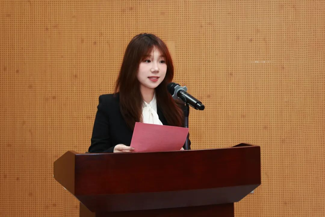 获奖学生代表蒋夏天讲述了自己与四季青的不解之缘,分享了大学期间将热爱化为深耕、实现全面成长的历程。她感恩四季青的暖心托举与师长的悉心培养,并号召全体同学以专业所长回馈行业,在传承与创新中贡献青年力量。