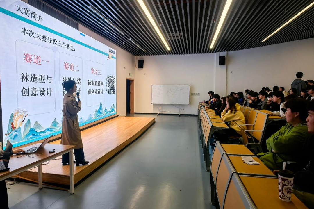 同时,宣讲团面向在校学子,细致拆解赛事参赛通道、设计创作方向、成果落地扶持政策及校地实践平台等核心信息,耐心回应现场师生关于专业发展、作品创作、产业融合、实践就业等各类疑问。宣讲团以此次宣讲为纽带,进一步打通高校设计专业人才与地方特色产业的对接通道,诚挚邀请青年学子立足专业所长,赋能传统袜业产业升级,用创意设计为白鹤袜业注入青春新活力、点亮产业新未来。